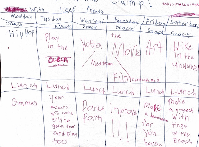 So I’ve come up with a camp schedule that I think I will enjoy as much as my daughter will, with some down time and alone time for both of us built in.